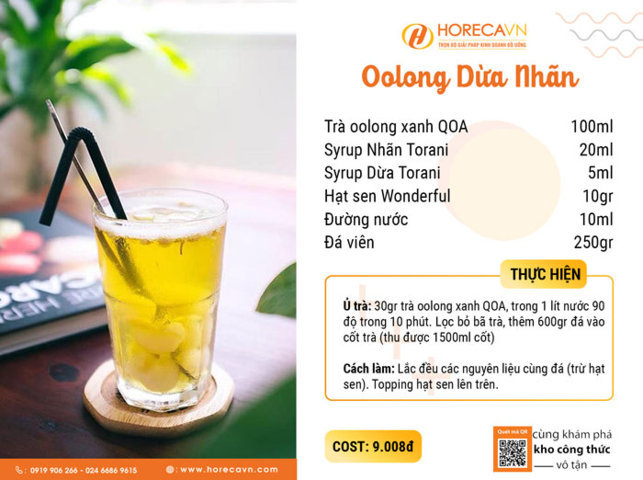 Mang đậm hương vị nhiệt đới bởi sự kết hợp giữa nhãn và dừa đem đến hương vị ngọt ngào, thơm ngậy, sâu lắng. Hơn thế nữa là việc kết hợp với nền trà oolong đem đến hương vị thơm thanh, ngọt hậu cho những trải nghiệm đầy hấp dẫn, ý vị. Quán đồ uống nhà bạn đã có món này hay chưa, nếu như chưa có thì hãy lưu ngay công thức này nhé!