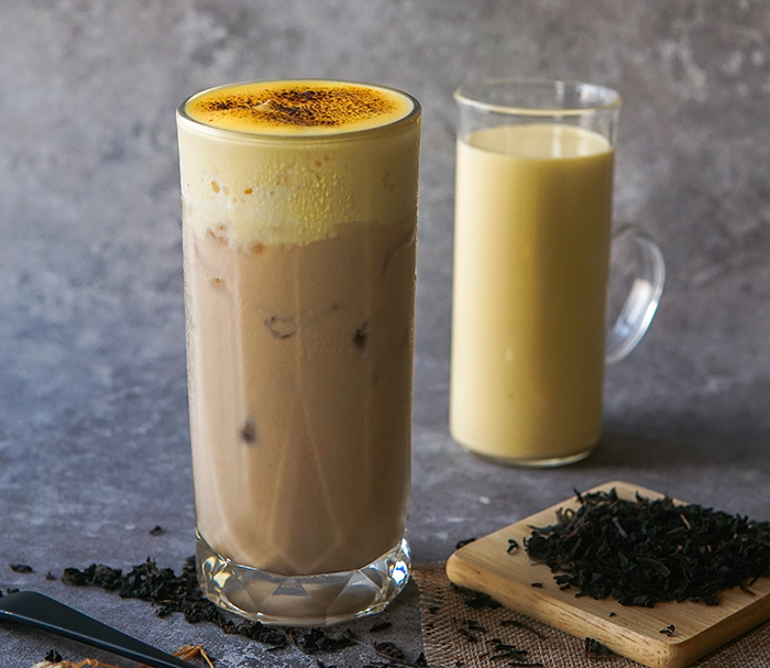 Một món trà sữa nướng khác sở hữu 3 HOT TREND trong một ly đồ uống không thể không nhắc đến Trà Sữa Nướng Kem Trứng Trân Châu Đường Đen. Vị ngọt ngậy của trà sữa nướng và kem trứng, kết hợp với vị ngọt ngào, dẻo mềm của trân châu đường đen, chắc chắn sẽ là một ly đồ uống không thể bỏ qua đối với những vị khách thích “béo ngậy, đậm đà, uống hoài không ngán”.